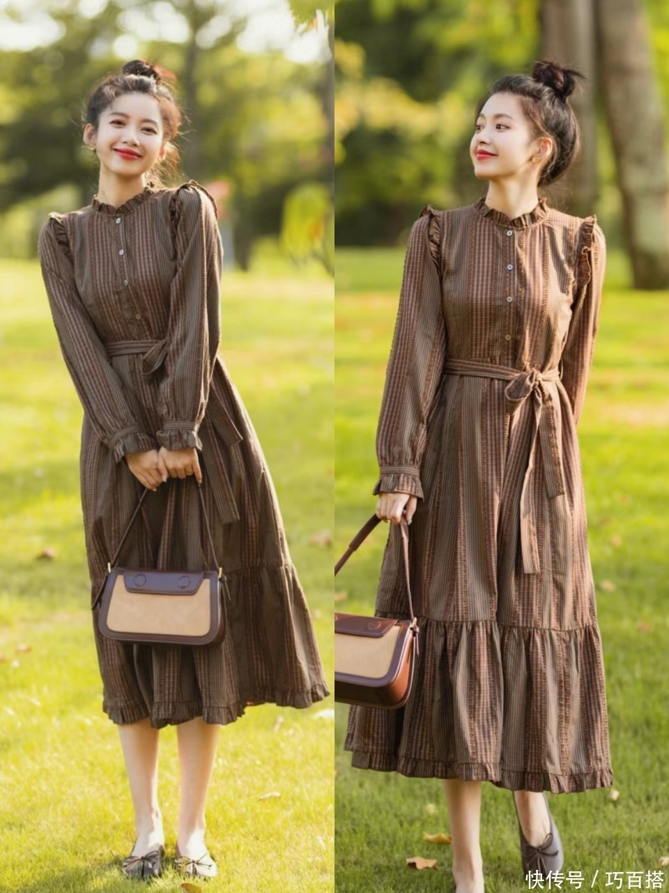 穿衣追求簇新感的姐妹,早秋一定要优先吸收长袖类连衣裙,长裙上身,遮肉显瘦又贼郑重,有副乳、拜拜肉不敢穿吊带、三分袖连衣裙的姐妹,盲选它都不会出错。