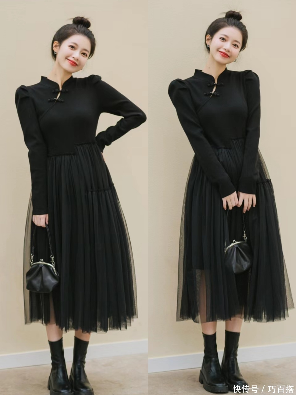 不外有少许需要辅导大众一下,要是吸收长袖+不外膝短裙摆,尽量吸收修身技俩的连衣裙,要是吸收长衣袖、长裙摆,不错选宽松也可选紧身,选紧身的前提是,体魄潦倒有致、竣工无瑕。