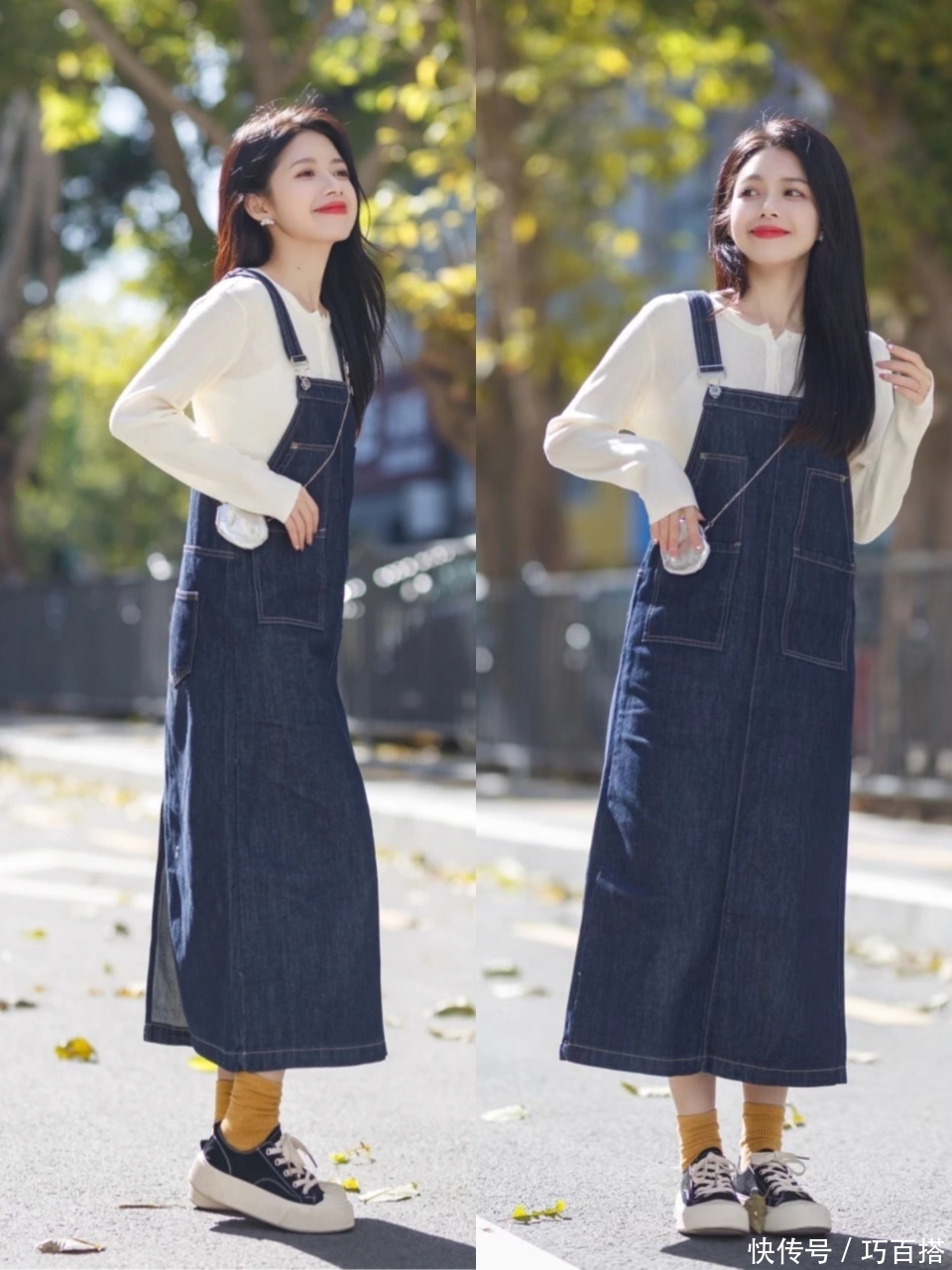不管大众是吸收蓝色牛仔吊带裙如故吸收卡其色工装背带裙,都能赚足回头率。不外有个大前提是,必须内搭长袖,最能迎合早秋穿衣氛围的叠搭是吸收宽松版型的乖乖女衬衫,思要穿衣减龄,就按照这个格式来。